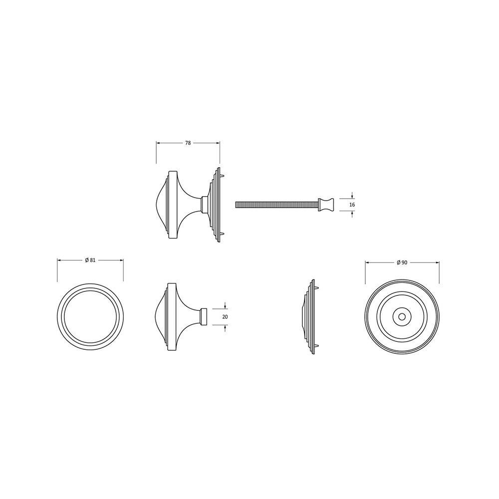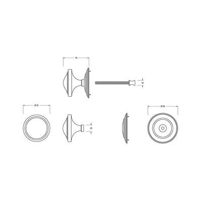 Satin Stainless Steel Round Art Deco Centre Door Pull dimensions drawing