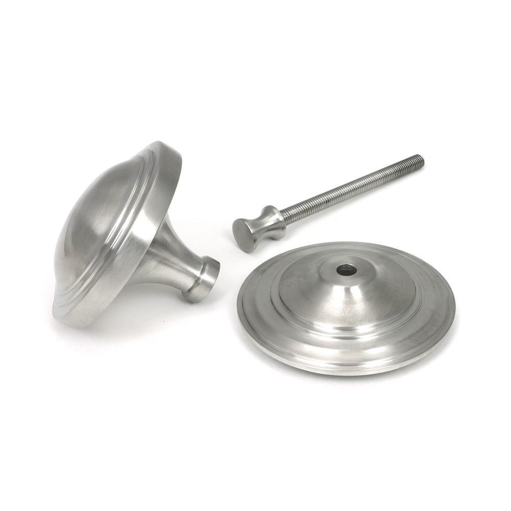 Satin Stainless Steel Round Art Deco Centre Door Pull taken apart