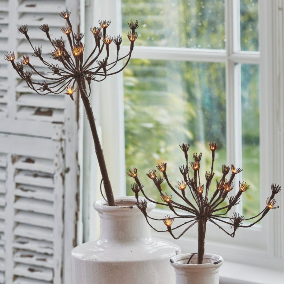 Light up your garden with this gorgeous solar powered wild fennel light! With 15 warm white LED lights it will create a lovely warm glow, perfect for lining a pathway or placing around an outdoor dining area.