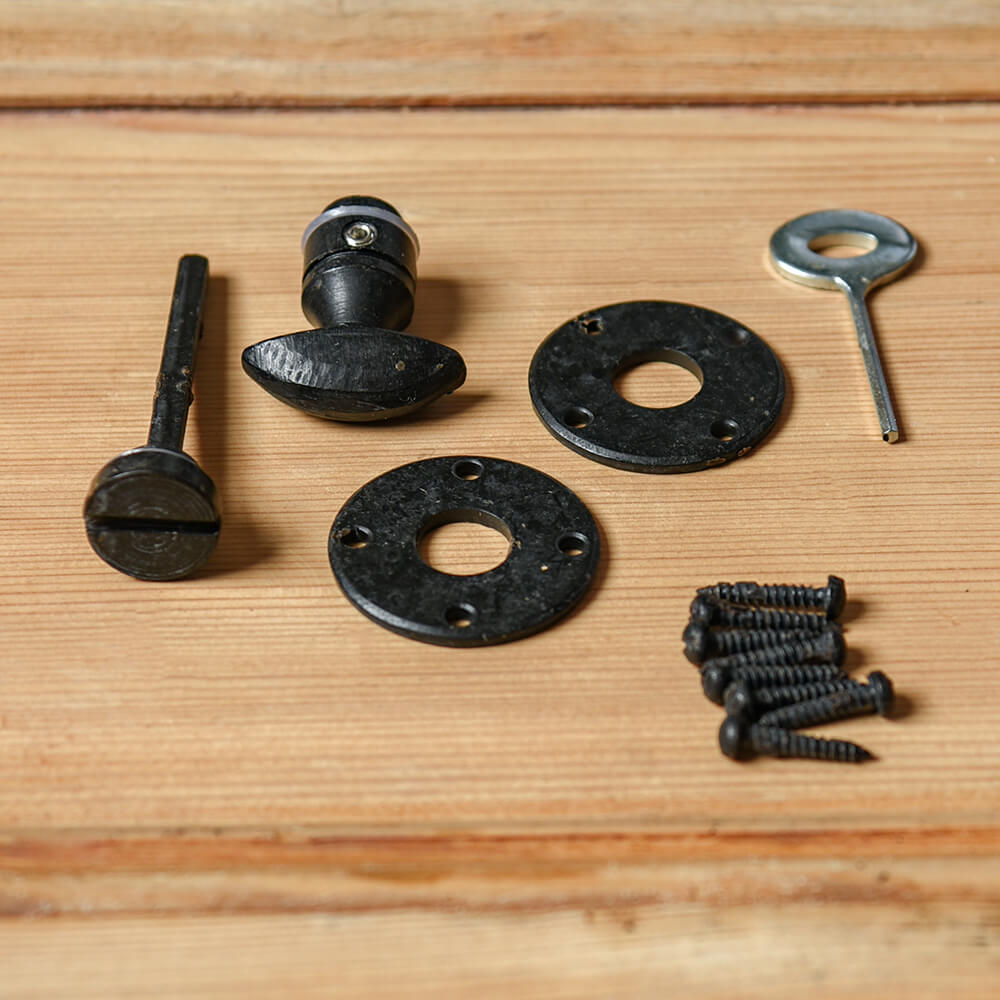 Traditional thumbturn lock that is ideal for bathroom or toilet doors and has an emergency release turn on the outside. Crafted from steel and finished in a black beeswax coating that is anti-corrosive. Designed to work with a bathroom mortice lock or a tubular deadbolt.