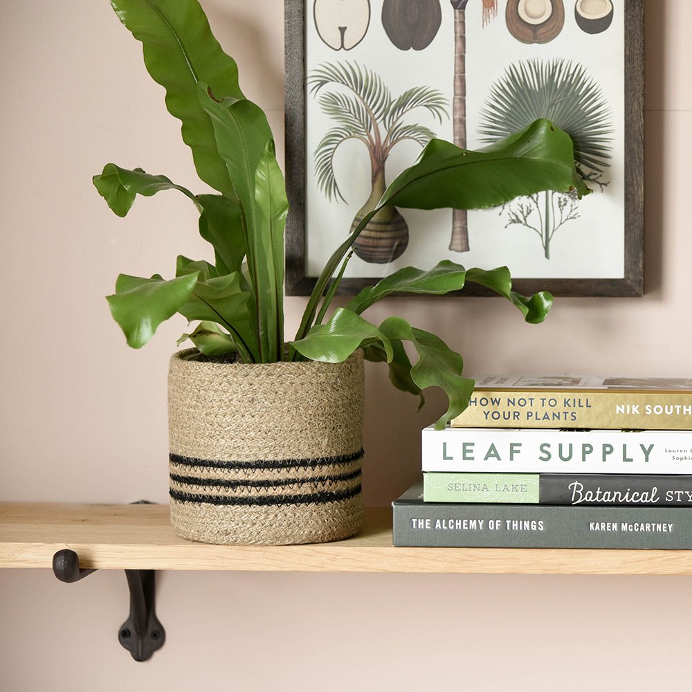 This amazing basket style plant pot is made from jute and has decorative black stripes that run round the pot. Lined with plastic to make it leak free and ideal for house plants and potted herbs on the kitchen window sill. Why not team with our other Jute planters to create a lovely collection.