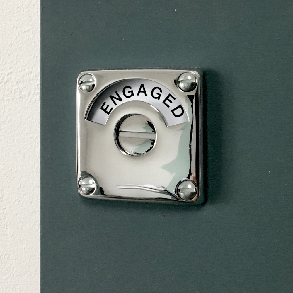 High quality indicator bolt that is crafted from solid brass with a polished chrome finish. The originals of these classic early 20th century toilet locks are now highly sought after. Perfect for use on the bathroom or toilet door. Hand made in the UK and features a slide action bolt which spins the dial with ease.