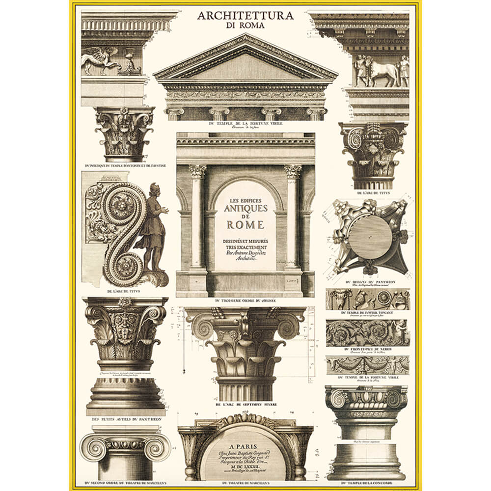 Architecture of Rome A2 print of archival imagery showcasing the skill and wonder of Roman engineering. Printed on superb quality textured paper it can be used as a poster in our oak A2 poster hangers or as luxury gift wrap for a memorable present. Inscribed 'Architettura di Roma'.