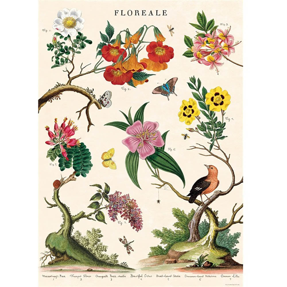 Colourful cavallini poster featuring a variety of different flowers, foliage and wildlife against a pale background. Made using high quality Italian paper, good enough to frame or hang.